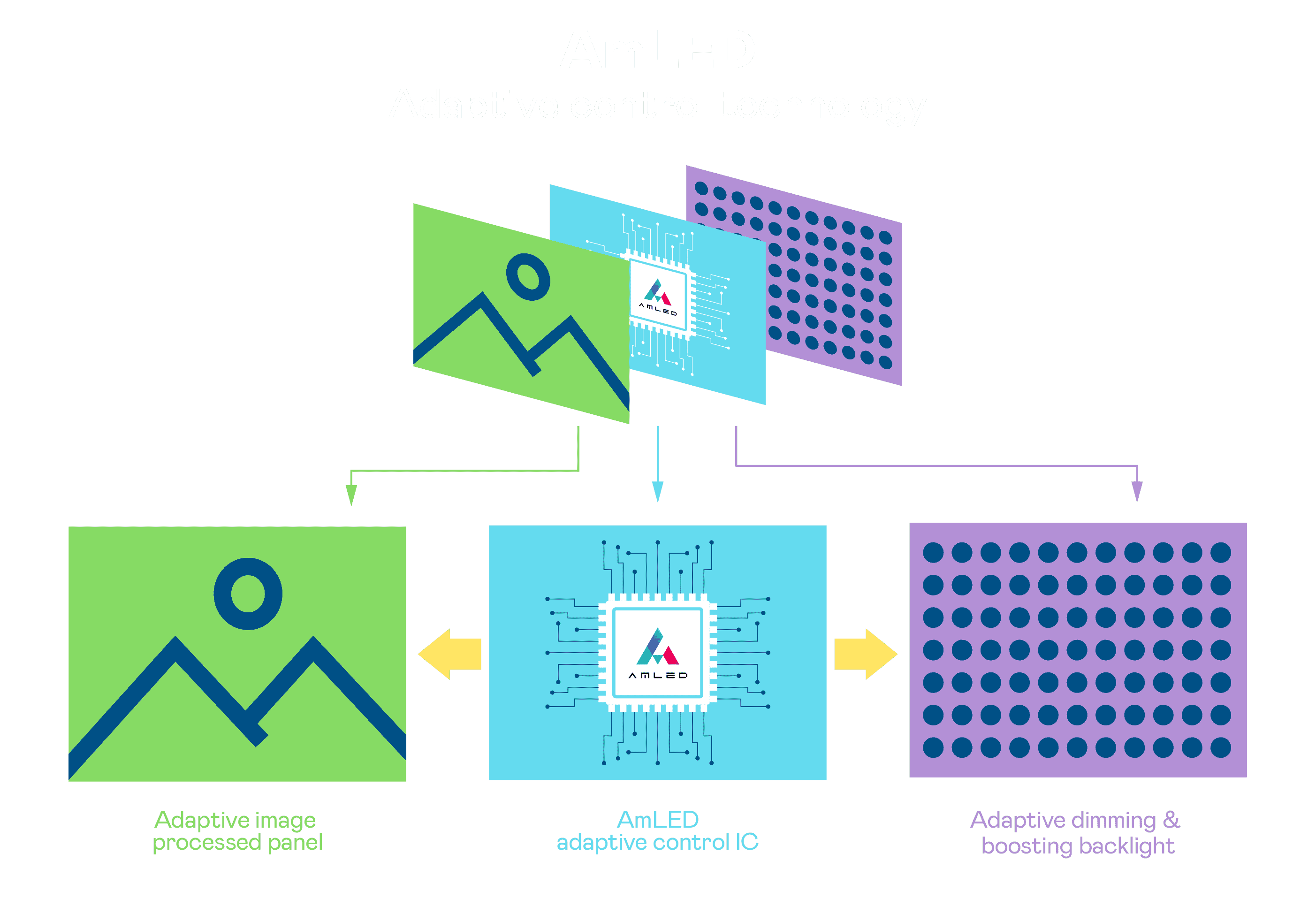 透过动态影像处理和 Mini LED 背光模组的动态对比及峰值亮度调变,,,,AmLED 显示技术精准细致的局部调光效果达到超过 1,000 nits 的超高亮度表现,,亮部更明亮、、暗处更深邃,,,呈现真实黑色中的亮度以及平滑灰阶,,,打造出具层次分明的精致光影细节。。。。