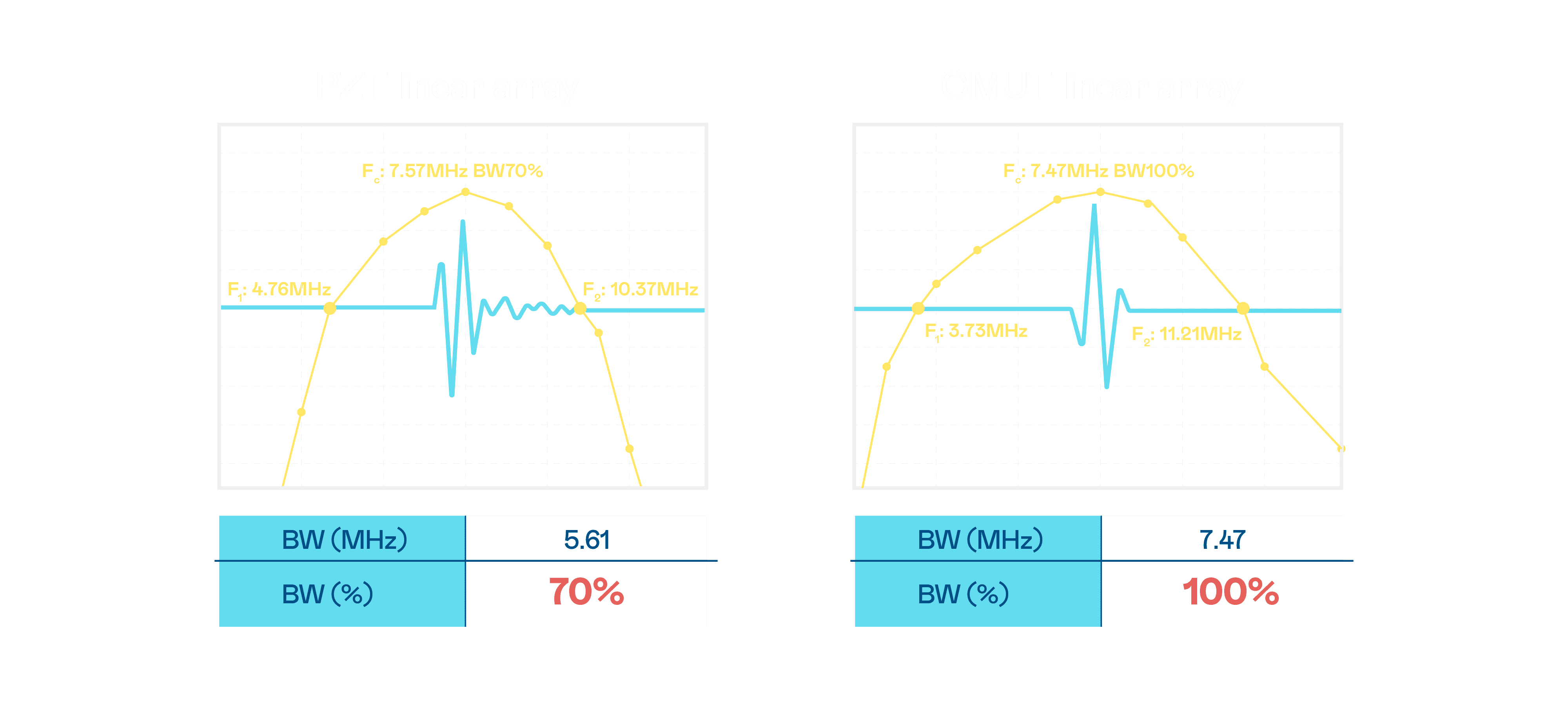 CMUT 技术是一种用电容式微机电元件来产生超音波讯号的技术。。与传统 PZT 压电式技术相比,,,,CMUT 频宽增加 30%,,,更宽频的超音波讯号让影像解析度大幅提升,,是实现高影像品质医疗超音波扫描、、、促进精准医疗发展的关键技术。。。